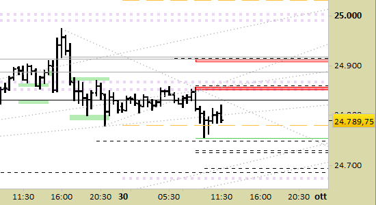 Apriamo short su ritorni a 24832.25; stop sopra 24918.00 senza attendere alcuna conferma.